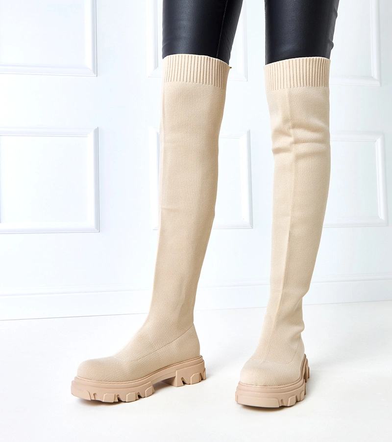 Hosszú bézs anyagú platformos csizma Athira