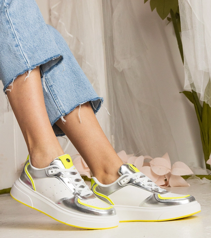Ezüst női tornacipő neon kiegészítővel Zorra