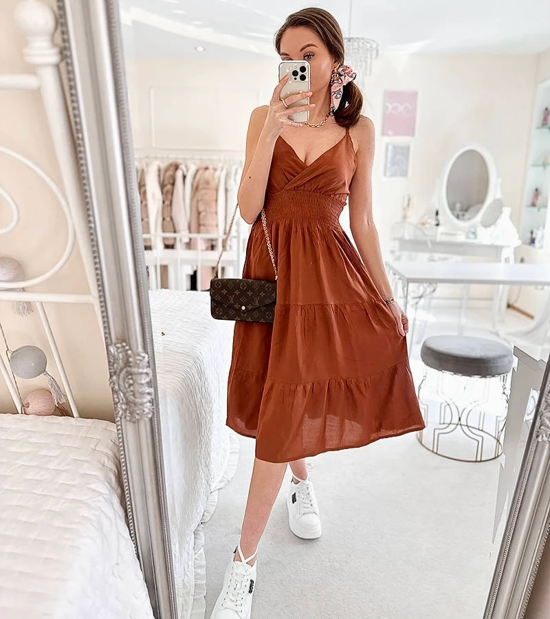 Rózsaszín hosszú ruha Édouard hasadékkal