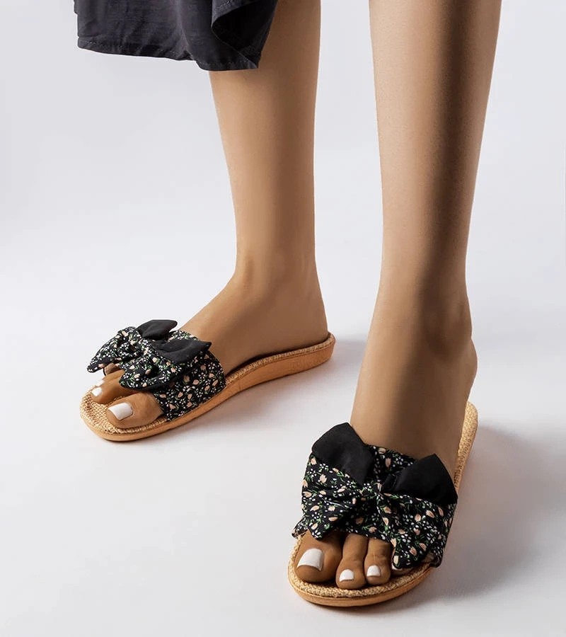 Fekete masnival díszített papucsok Tachel