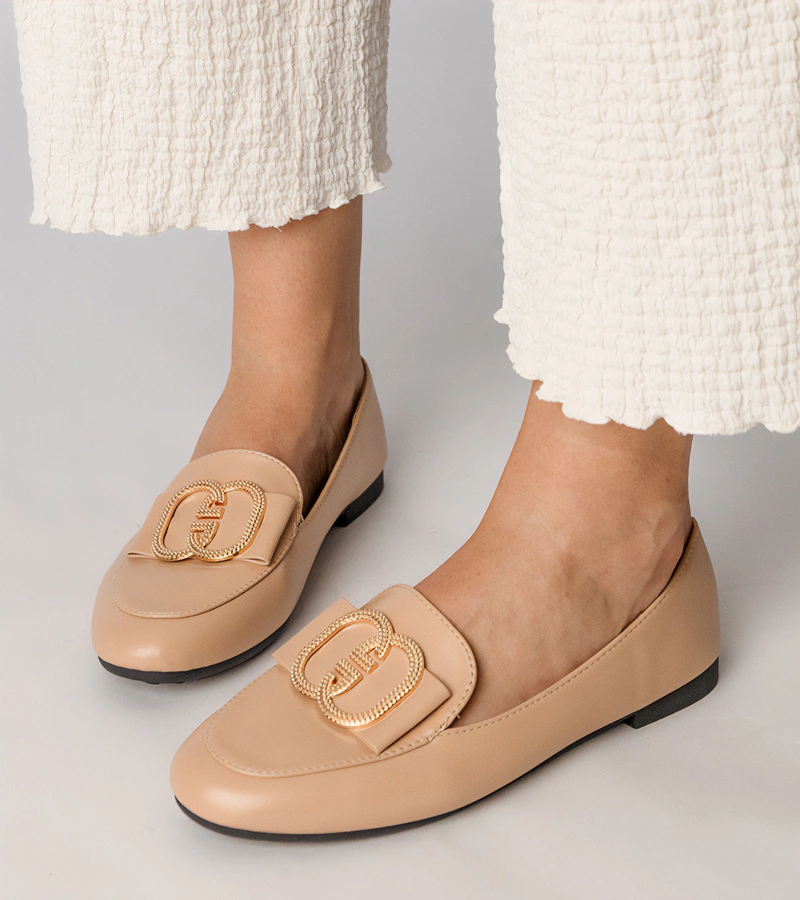 Sötétbarna mokaszinok arany díszítéssel Feola