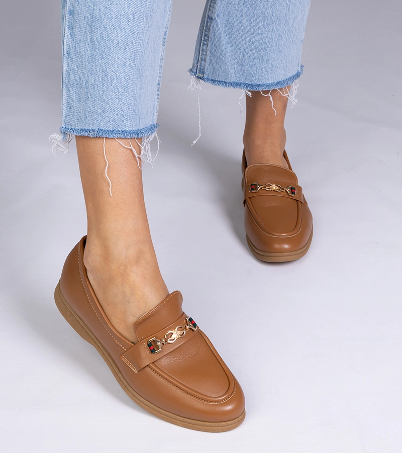 Sötétbarna mokaszinok arany díszítéssel Feola