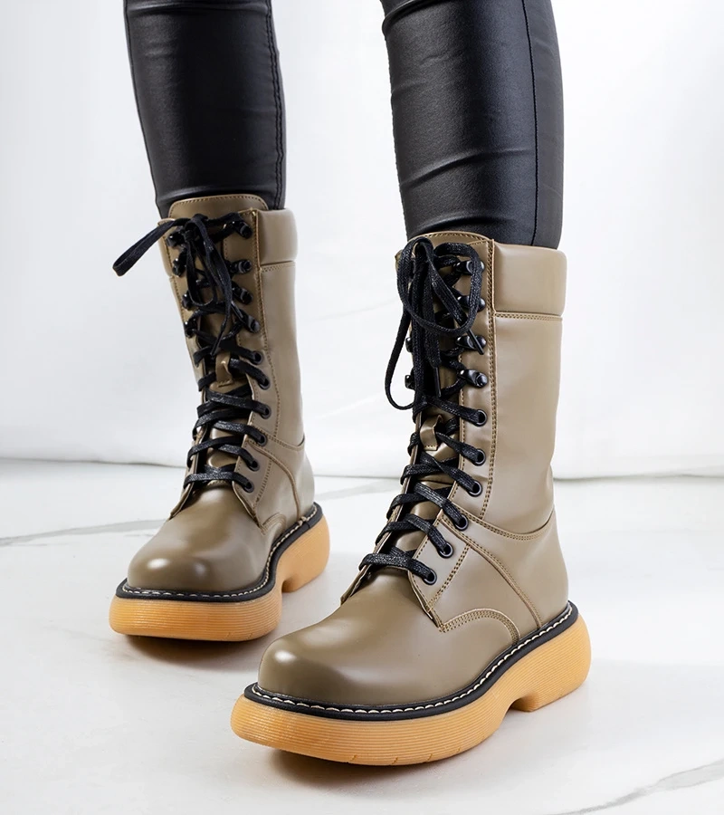 Amelie bézs bokacsizma z zoknis szárral