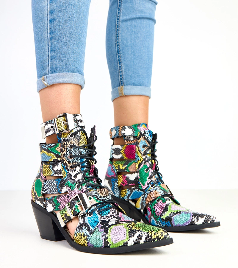 Fekete-fehér fűzős bokacsizma kivágásokkal Verica