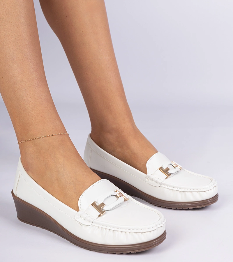 Sambada matt kivitelű női krém mokaszin ék sarkú