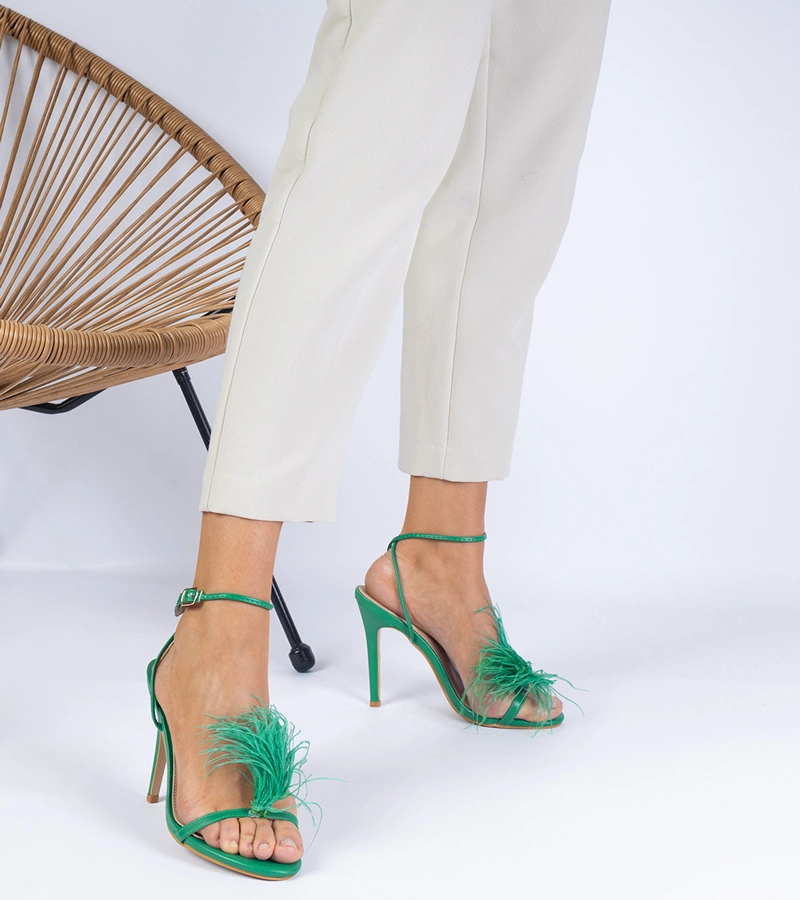 Zöld szaténközepű cipők strasszkövekkel nyitott sarokkal Mrozzi