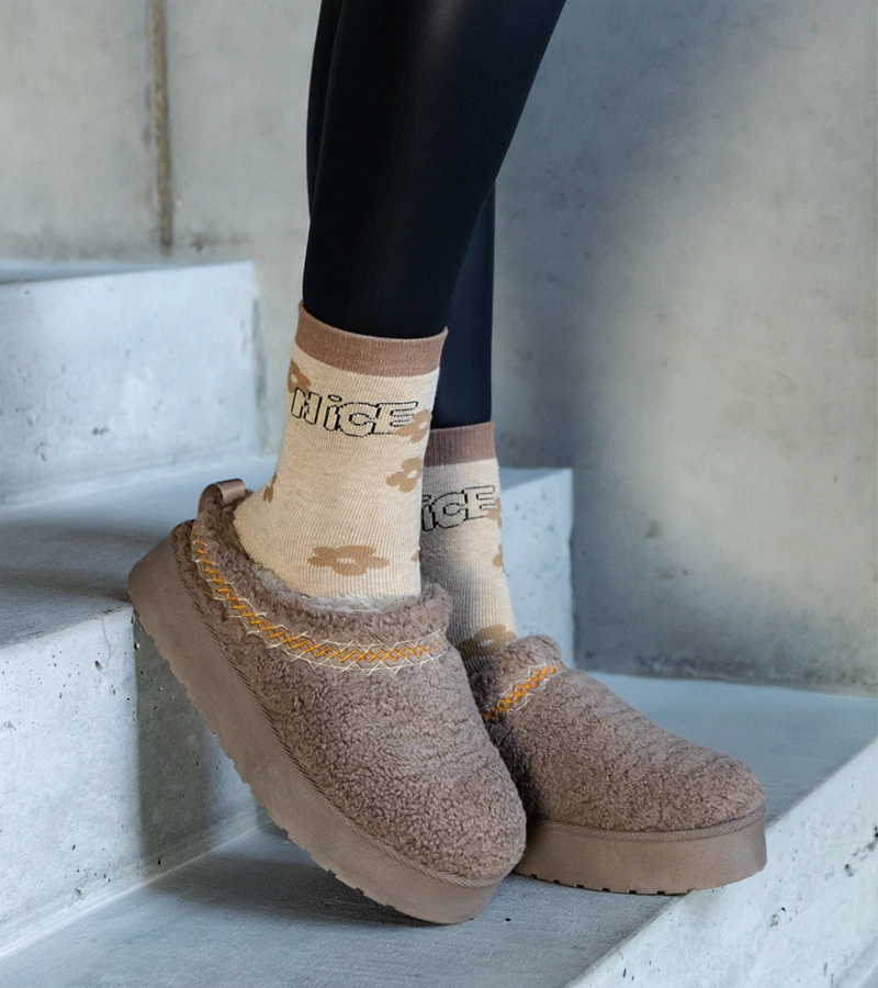 Barna platformás hócsizmák alacsony szárú, hímzett Greene mintával.