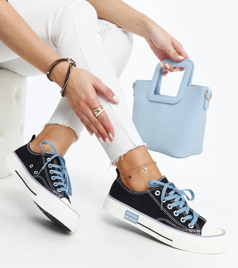Jadranka színes fűzővel ellátott fekete tornacipő