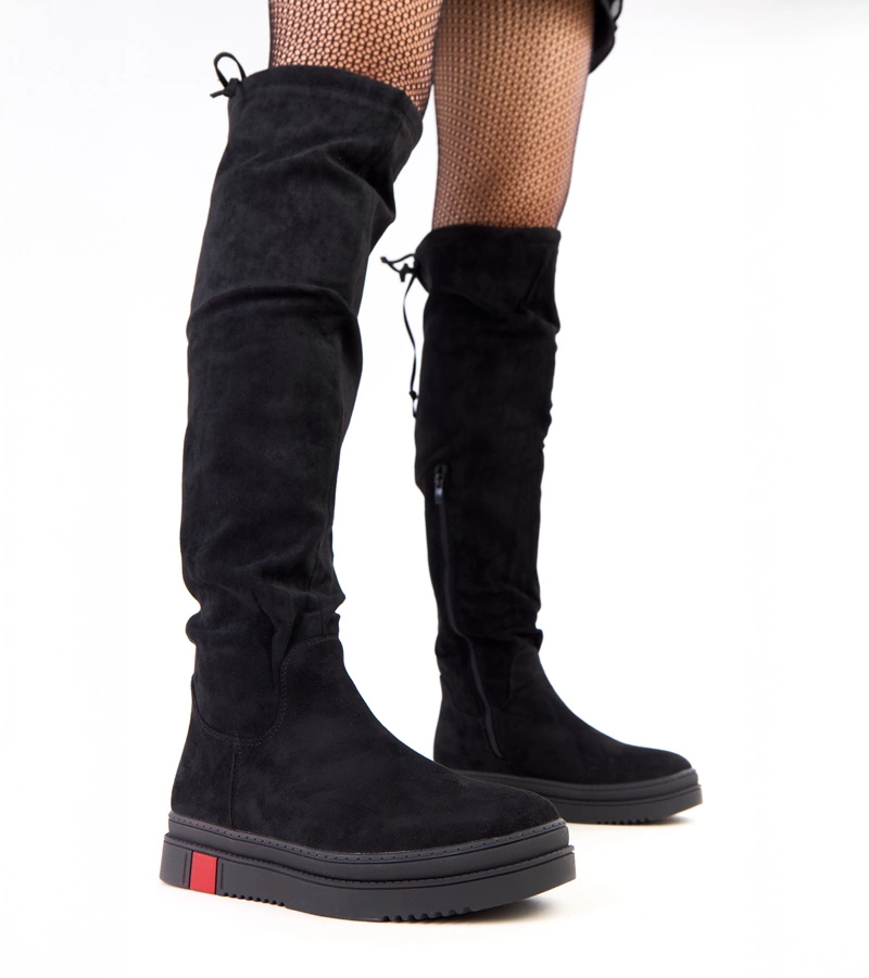 Fekete melegített platform bokacsizma kövekkel díszített Dajana