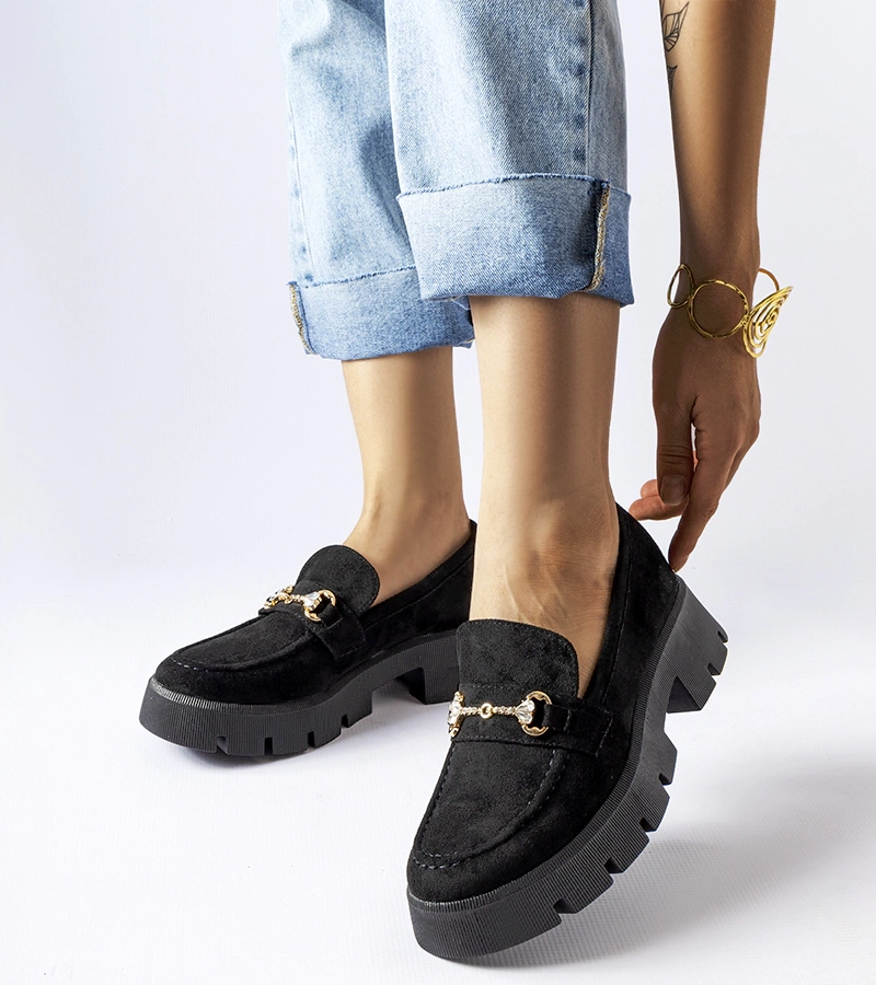 Fekete cirkóniákkal díszített mokaszinok Hartford