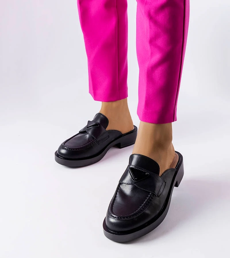 Fekete elegáns mokaszin Ouellet díszítéssel