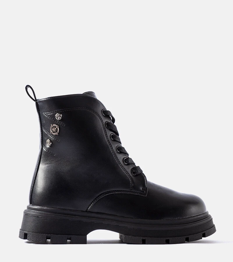 Fekete-rózsaszín lakkozott bakancsok Orso medvével