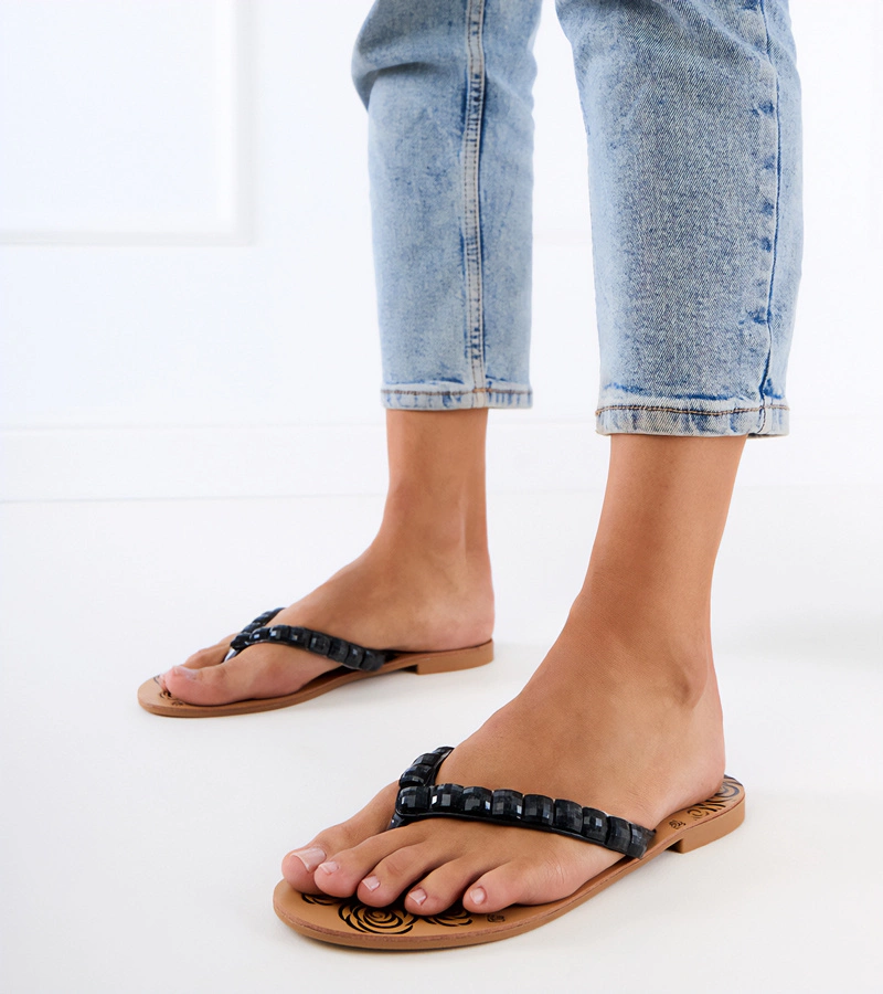 Liwiros kavicsokkal díszített fekete japán papucs