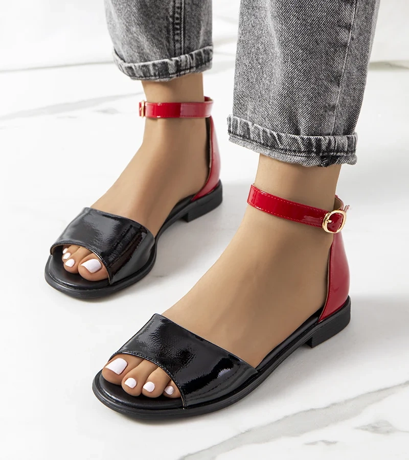 Fekete-piros lakkozott Besselsen szandál