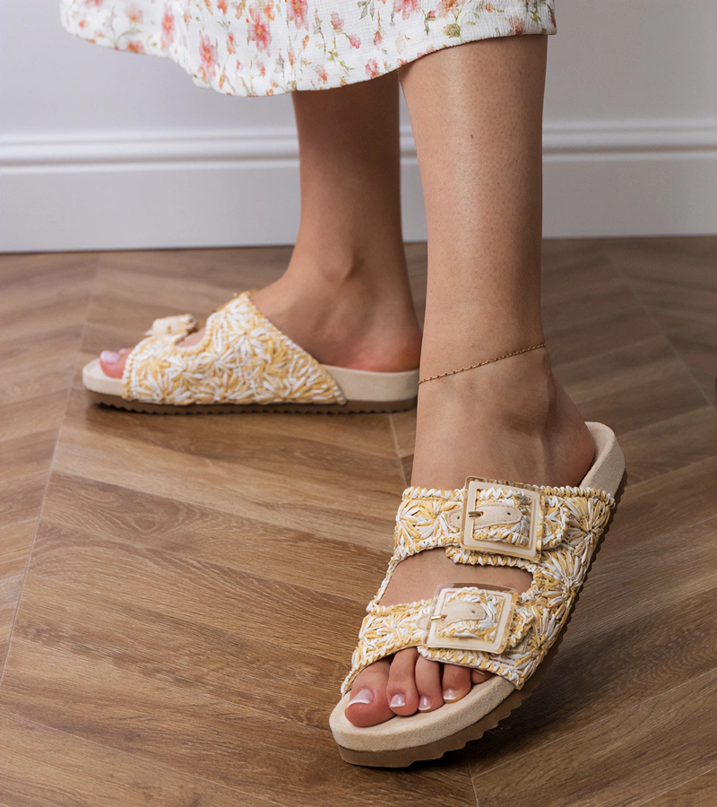 Bézs pántos papucs csatokkal Orinos
