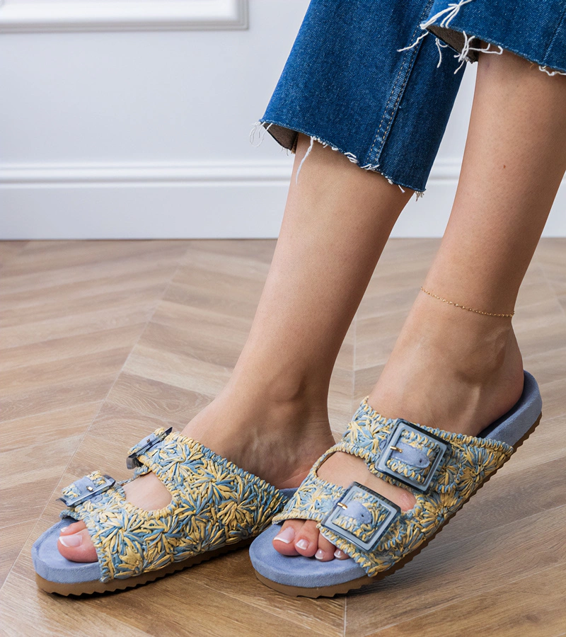 Kék horgolt papucs csatokkal a pántokon Firada