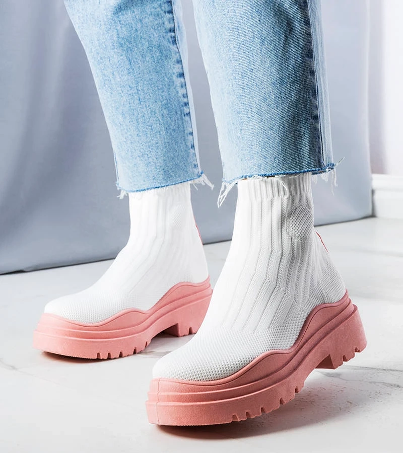 Fehér zoknis bokacsizma rózsaszín talppal Cali
