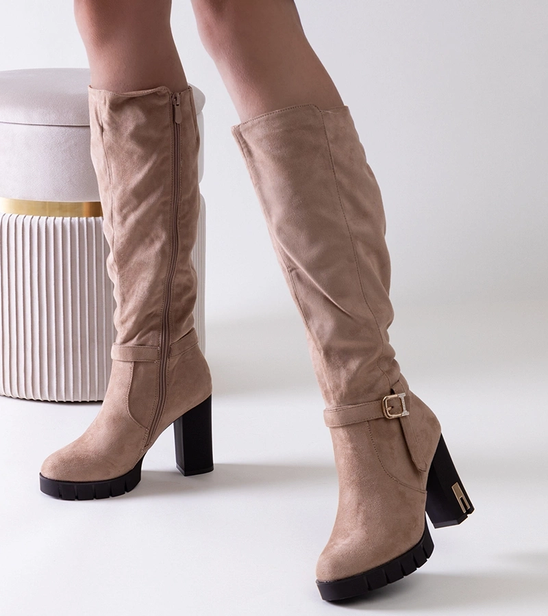 Wsuwane beżowe kozaki na słupku Saria po węgiersku to: **Saria bézs színű, oszlopos csizma**.