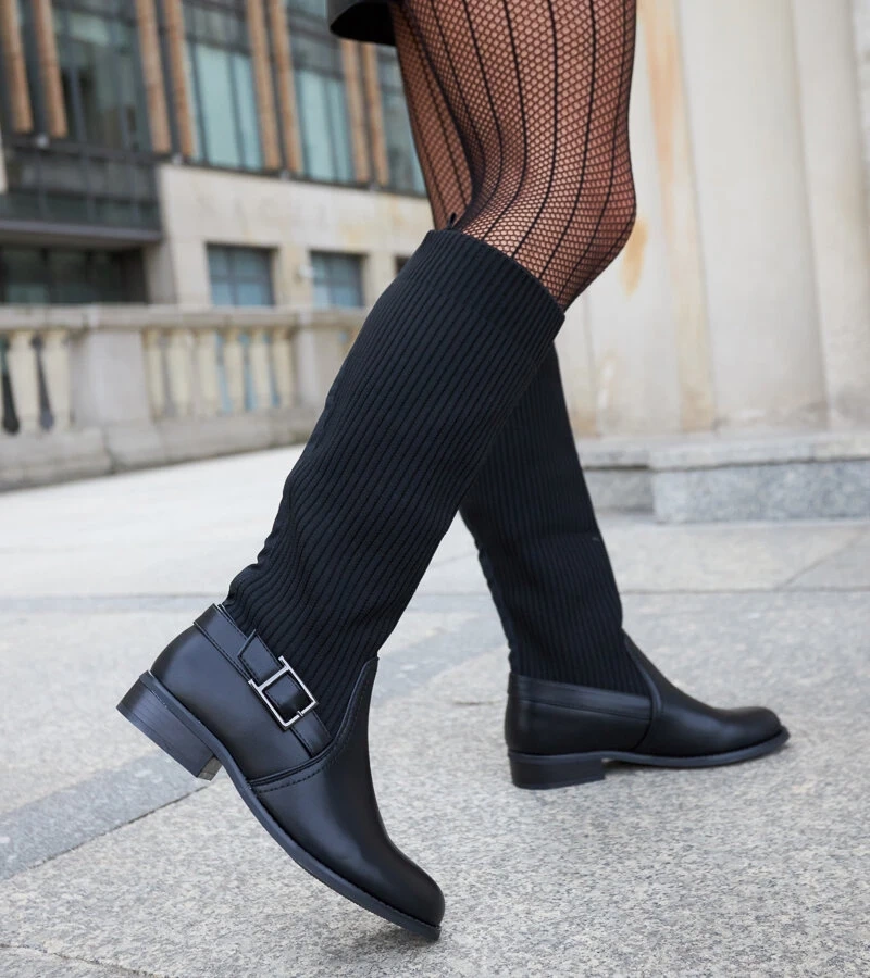 Fekete térdig érő lapos csizma Rafah