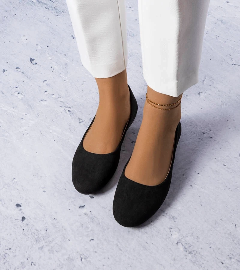 Fekete bőr talpbetétes balerinacipő Lespérance