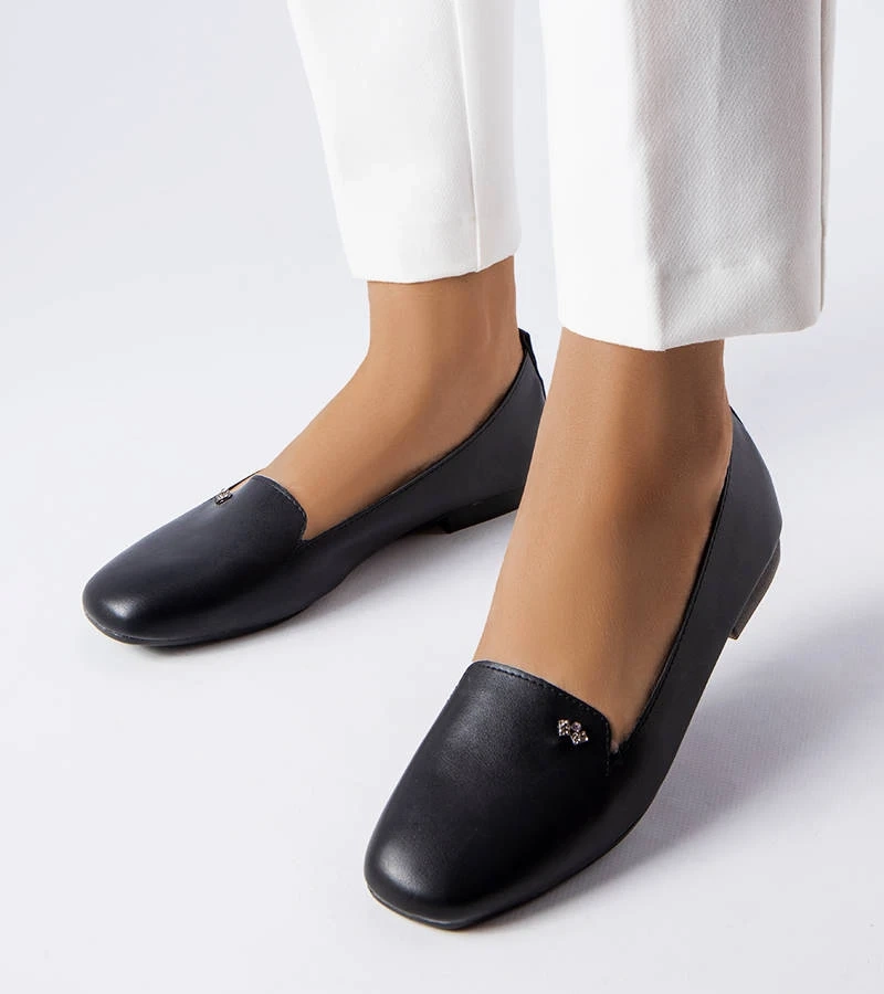 Fekete bőr talpbetétes balerinacipő Lespérance