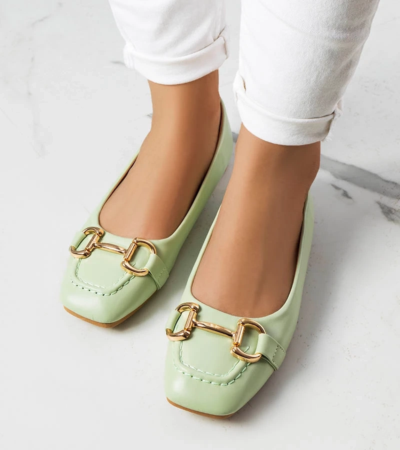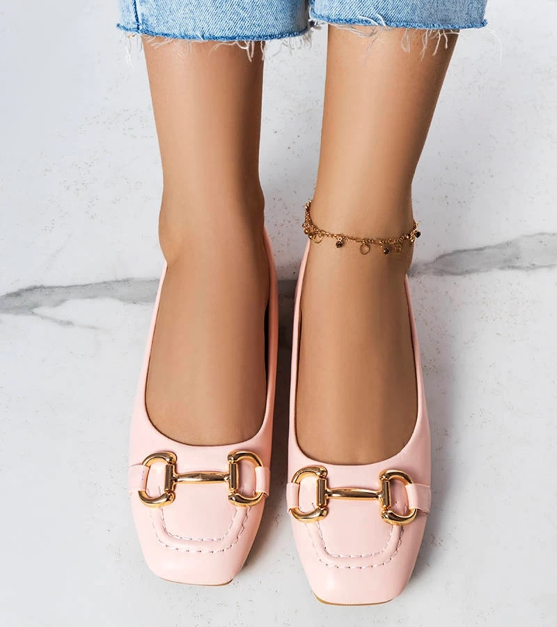 Bézs balerinacipők masnival és brossal díszítve Esdras