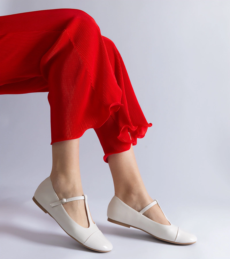 Gloriana fehér balerinák lakkozott orral, csattal rögzítve