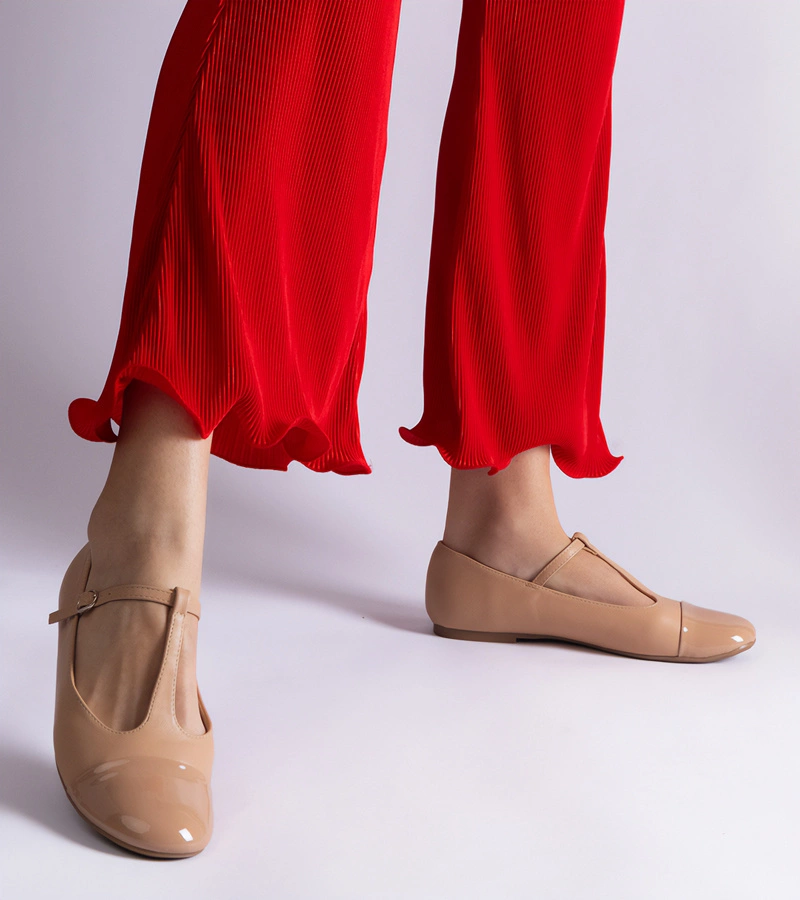 Jaures bézs-arany balerinák lakkozott orral és tépőzárral