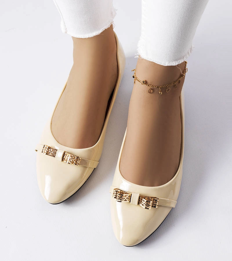 Chaloux bézs lakkozott balerina szalaggal