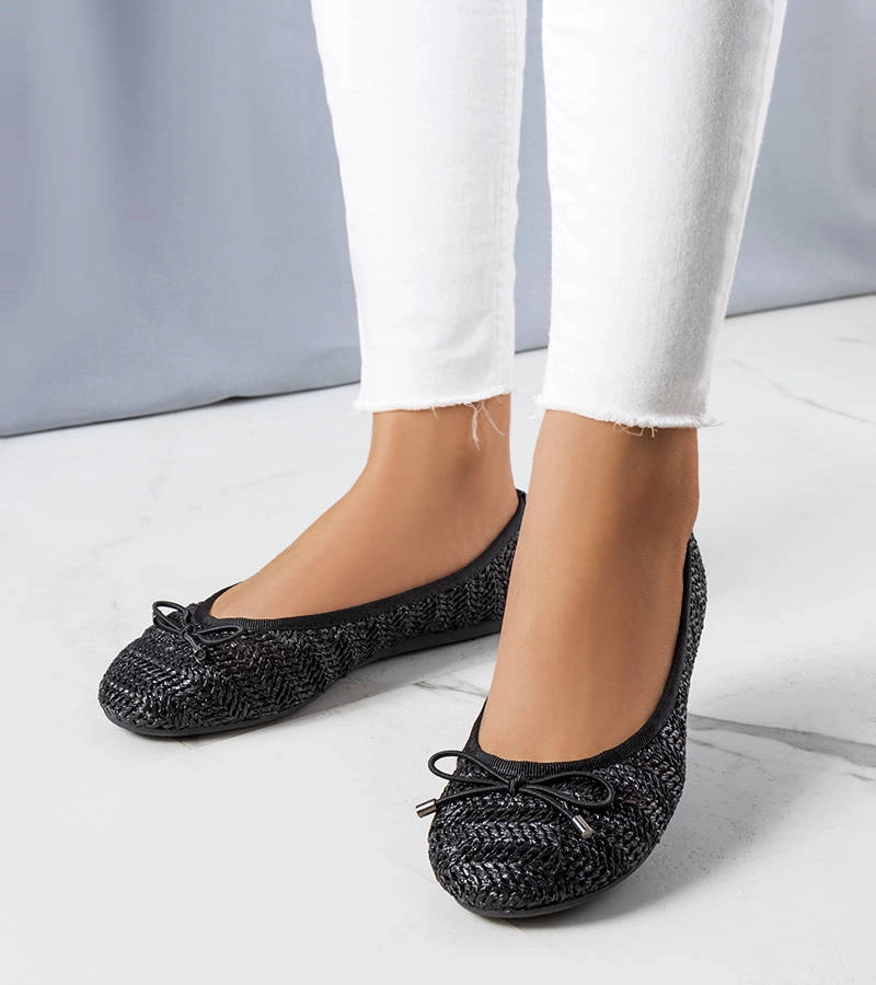 Fekete fonott balerinacipő Judith masnival