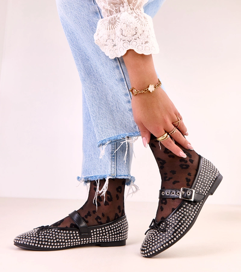 Fekete balerinacipők szegecsekkel és masnival Mylie