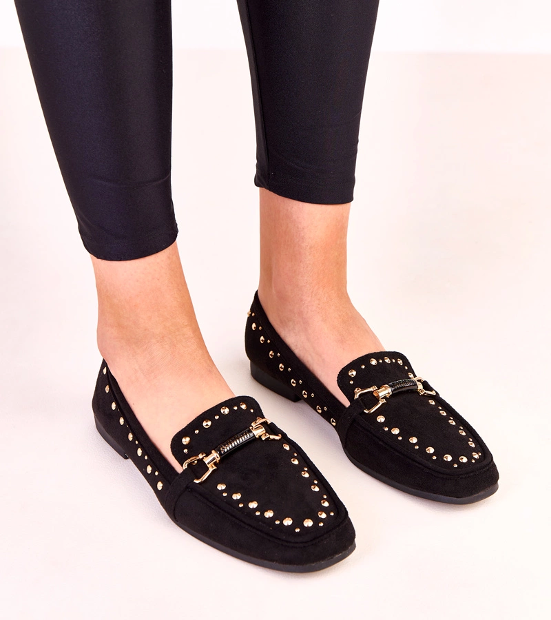 Fekete női balerinacipő csattal és kristályokkal Piona