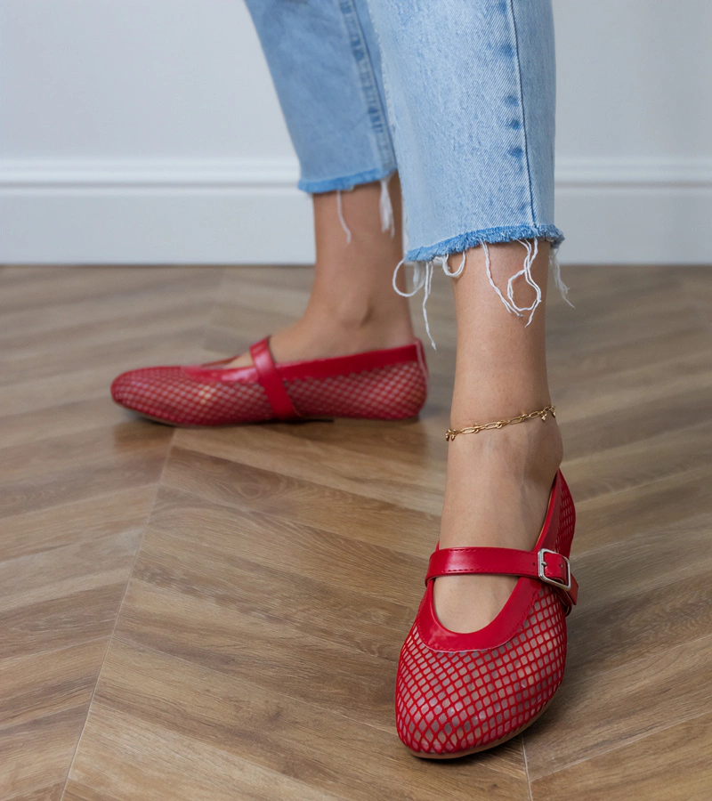Vörös bőrből készült csipkés balerina cipő Morgnano