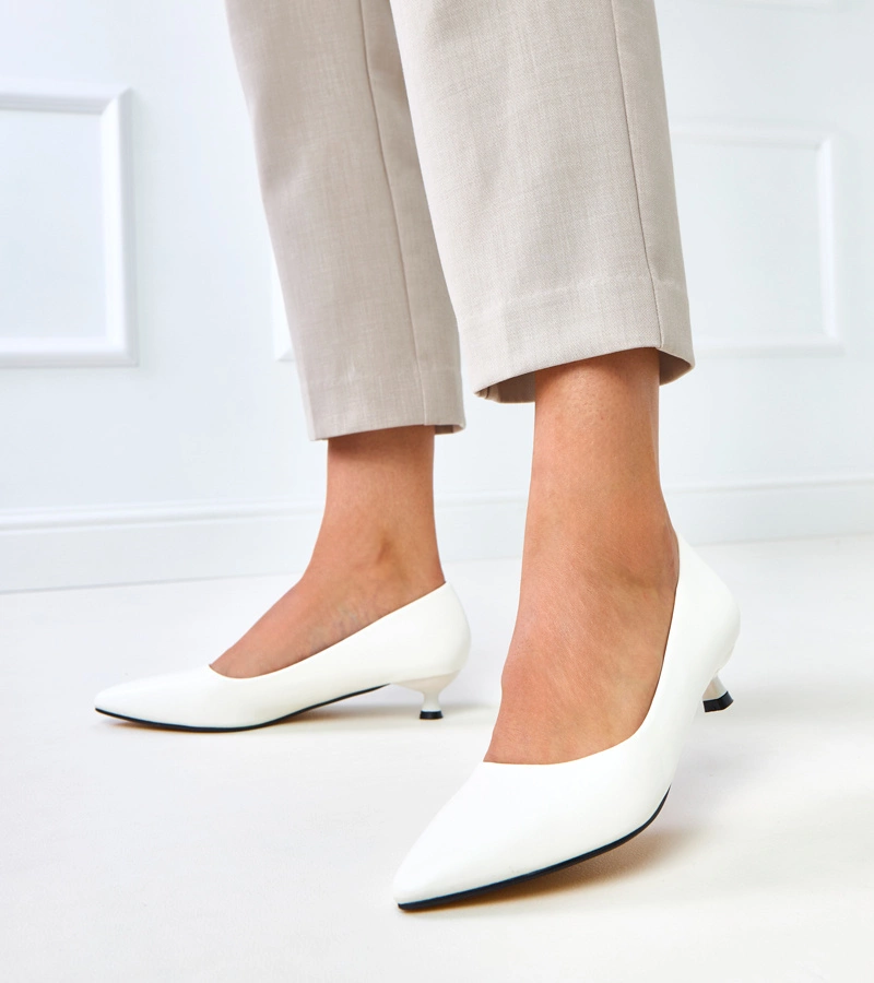 Fehér szövet körömcipő alacsony sarokkal Cassie