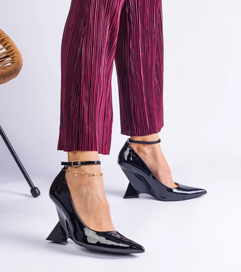 Fekete lakkozott éktalpú szandál csatokkal Vizario