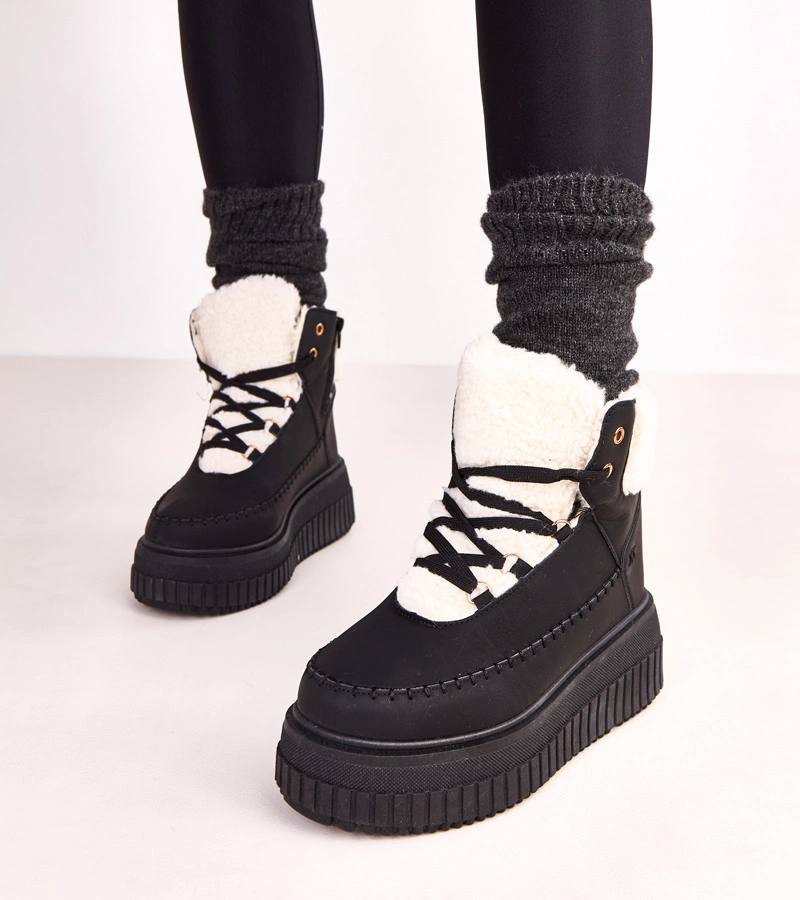 Lorraine fekete sportos, bélelt platformos bokacsizma