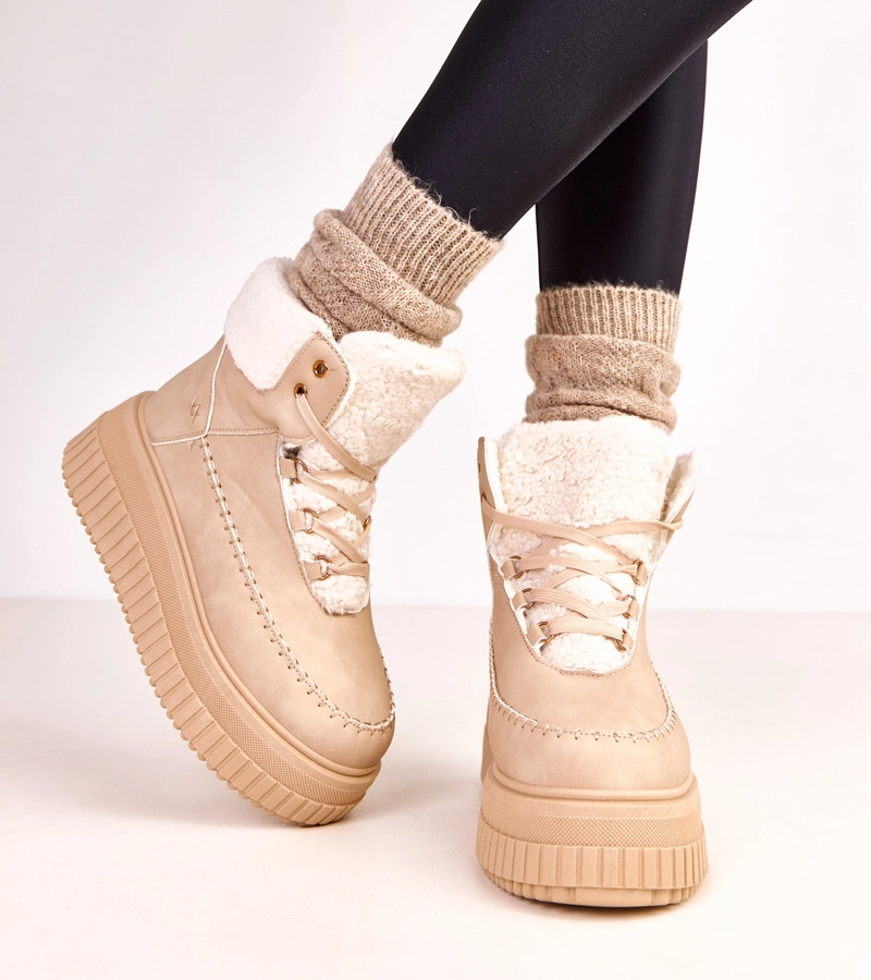 Bézs színű, szigetelt, köves platform bakancs Dajana