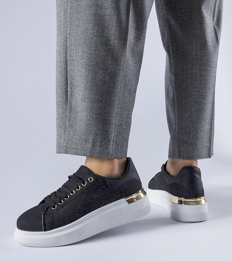 Fekete anyagból készült platformos tornacipő Mallus