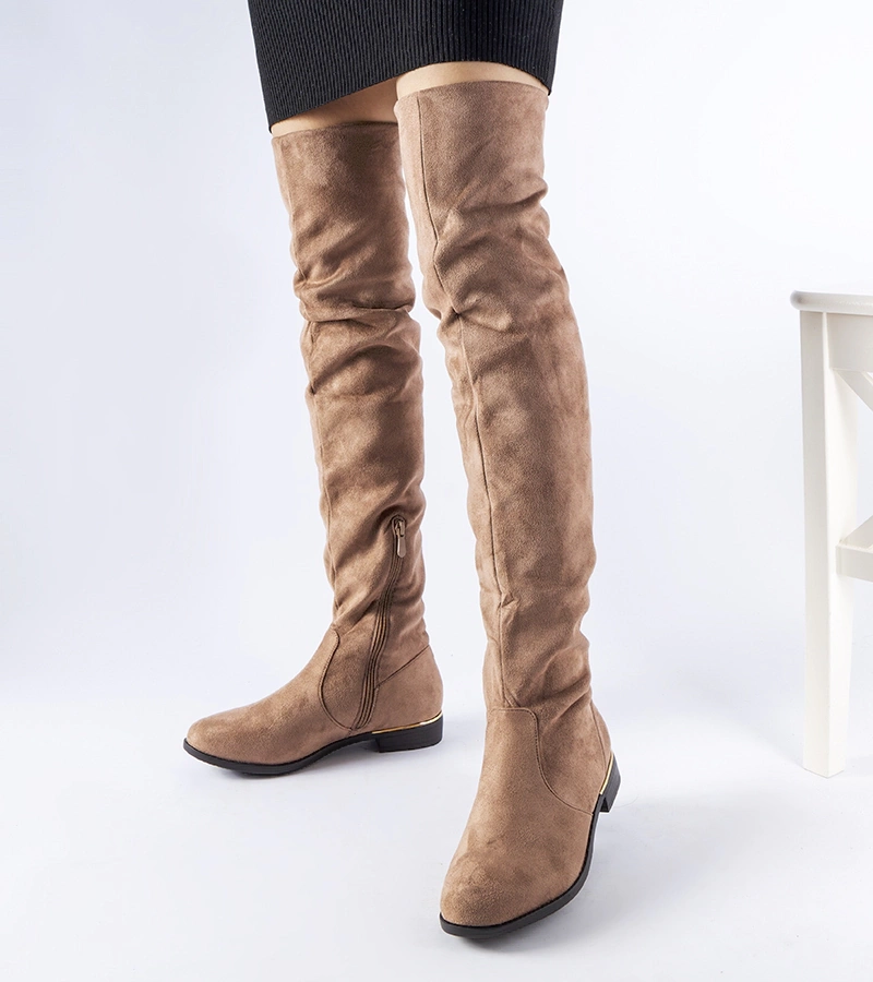 Hosszú barna meleg műszálas szárú csizma Elwira