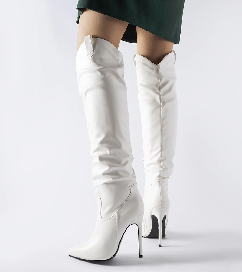 Fehér hosszú magas sarkú Cerati csizma