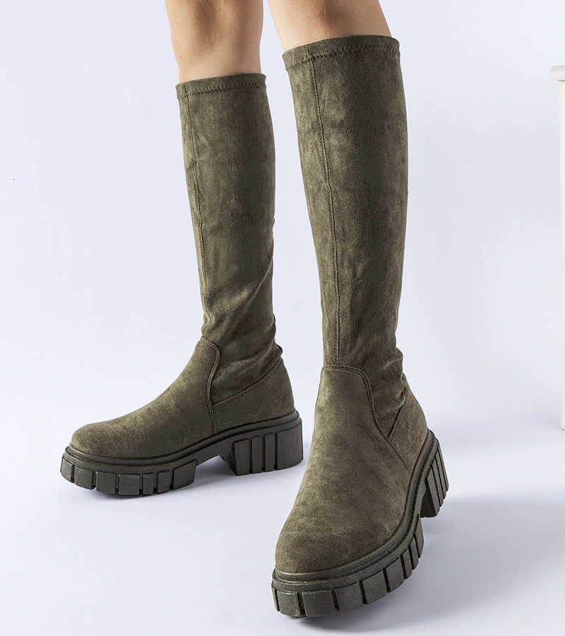 Szürke melegített térdig érő csizma Bardin
