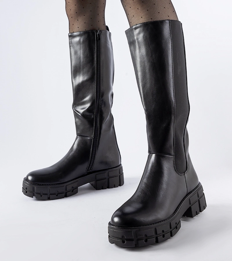 Hosszú fekete meleg bőrhatású Scandale csizma