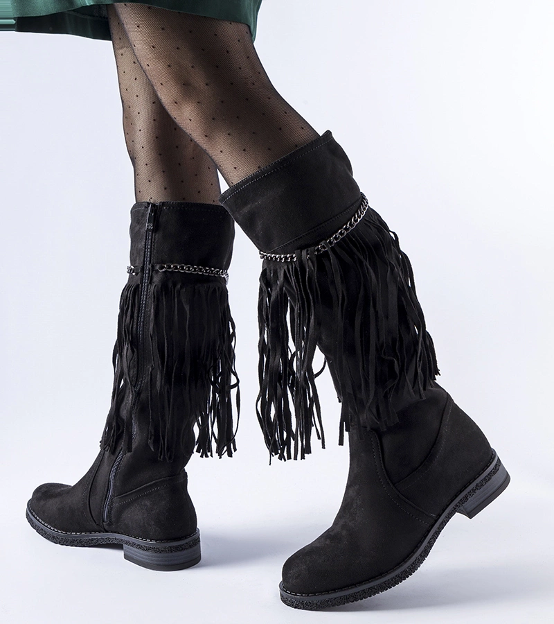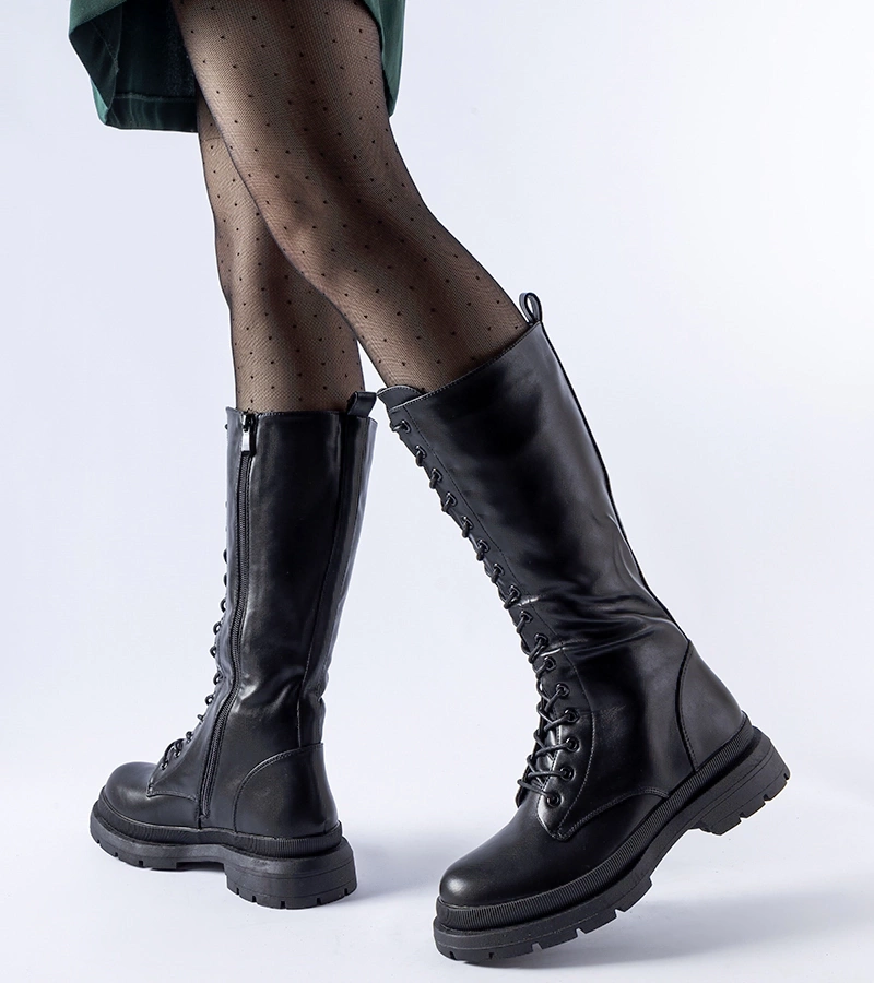Hosszú fekete csizma díszes cipzárral Nadwa