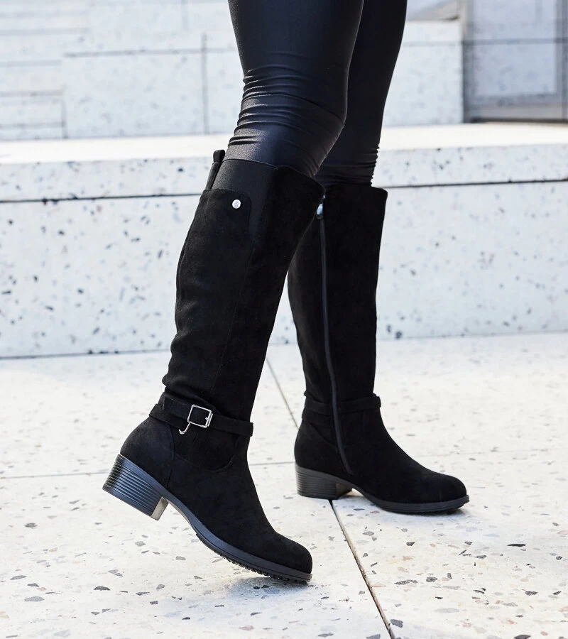 Fekete térdig érő lapos csizma Rafah