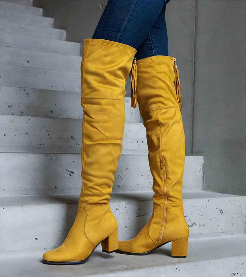 Sárga művelúr térd fölötti oszlopos csizma Alane