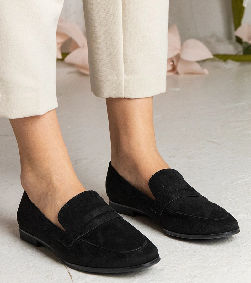 Sarimi női fekete mokaszin ék sarkú öko velúr
