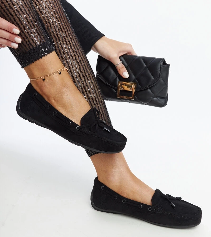 Fekete mokaszinok Saredo kristályokkal díszítve