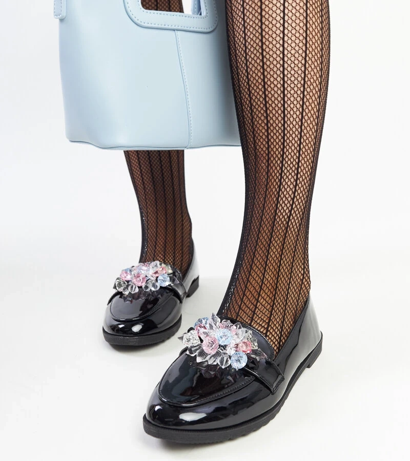 Fekete lánccal díszített mokaszinok Suelli márkától