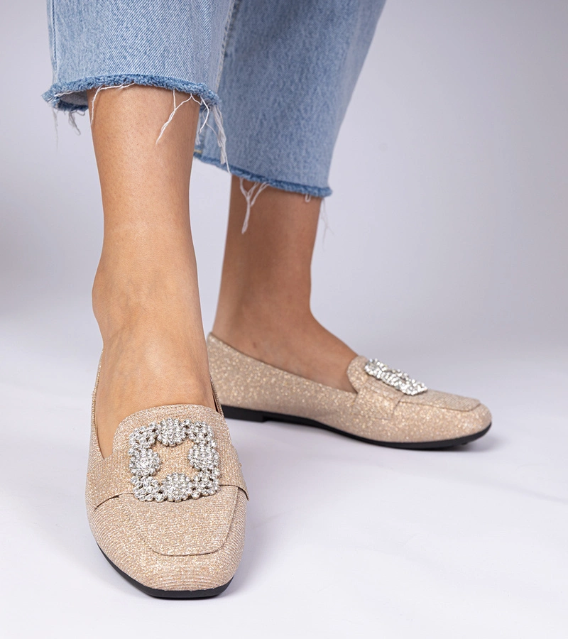 Sawelia arany csillogó mokaszinok cirkóniákkal