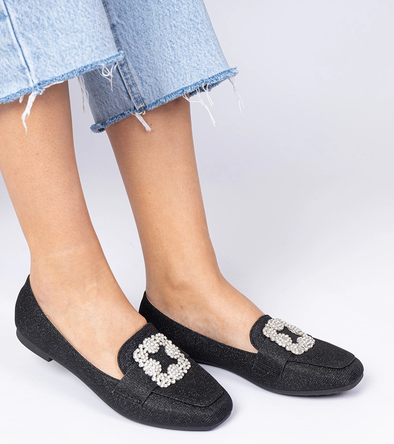 Fekete flitteres mokaszinok cirkóniával Sawelia